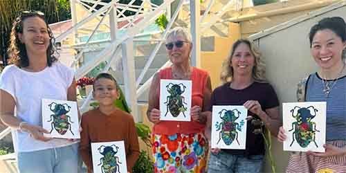 Aligned with the Critter Quest biodiversity project, February’s sessions invited participants to explore nature through art. One visiting artist led a workshop where participants created beautifully crafted beetles using different kinds of paper, transforming them into imaginative 3D works of art. Another artist demonstrated the fascinating process of making natural paints from earth pigments, showcasing vibrant colors created from natural materials. The powder-based pigments are lightweight to ship, easy to mix with water, and free of toxins—and even edible—highlighting a sustainable approach to artmaking.