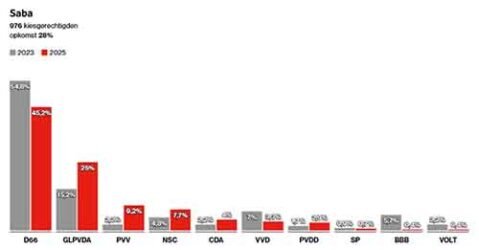 On Bonaire, D66, received 22.6 percent of the votes. PVV became the fourth party with 11.8 percent of the votes. At 21.5 percent, turnout was lower than in 2023. Bonaire has 15,578 eligible voters.