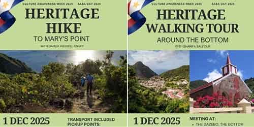 As part of Saba Day 2025 and Culture Awareness Week, the Community Development and Culture Department Saba invites the community to take part in two special heritage experiences happening this Monday. Choose the one that suits your pace!