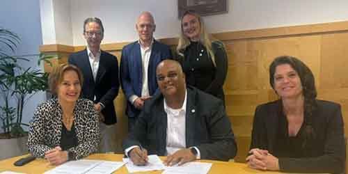 Commissioner Heyliger signed the agreements on behalf of the Public Entity Saba, Commissioner Leerdam on behalf of the Public Entity St. Eustatius, State Secretary for Youth, Prevention & Sport Judith Tielen of VWS, and Mascha van Werven, Executive Director of Jantje Beton.