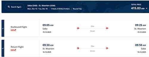 This is the booking on Winair’s website. For paying online, they charge extra on top of this.