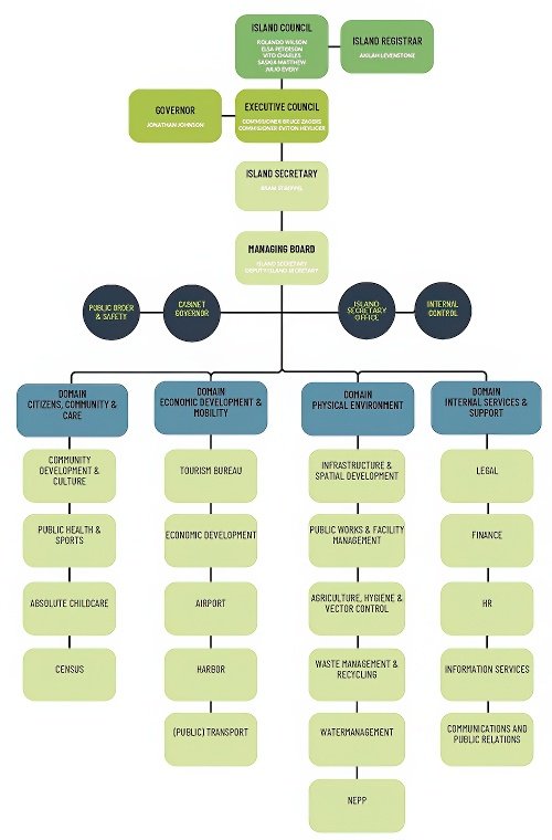 “This change will make our organization stronger and more connected. It creates clearer lines of responsibility and better cooperation between departments. Most importantly, it helps us serve the people of Saba more effectively with improved focus, coordination, and attention to quality and longer term effects and conditions, ” explained Island Governor Jonathan Johnson.
