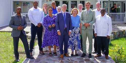 A site visit was then made to the Black Rocks Harbor construction zone, where Commissioner Bruce Zagers and Department Head of Infrastructure and Spatial Planning, Zelda Meeuwsen, provided a brief update on the ongoing progress at the location. This included preparations of the campsite for the workers who will arrive in the upcoming months, and the timeline of the project, which is dependent on the hurricane season. The coral relocation project was also highlighted, whereby critically endangered coral have been removed from the site and moved to another suitable location nearby, with a high survival rate.